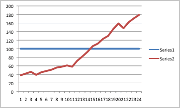 Series 2 = uitbetaalde maandelijkse commissie